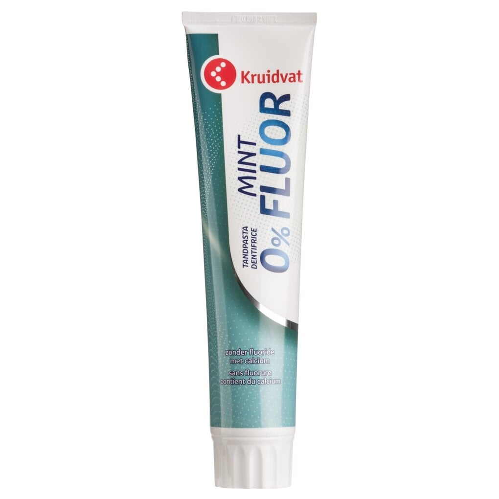 Kruidvat 0% Fluor Tandpasta is speciaal ontwikkeld voor mensen die op zoek zijn naar tandpasta zonder toevoeging van fluoride. De tandpasta bevat calcium en zorgt voor schone tanden en een frisse adem.