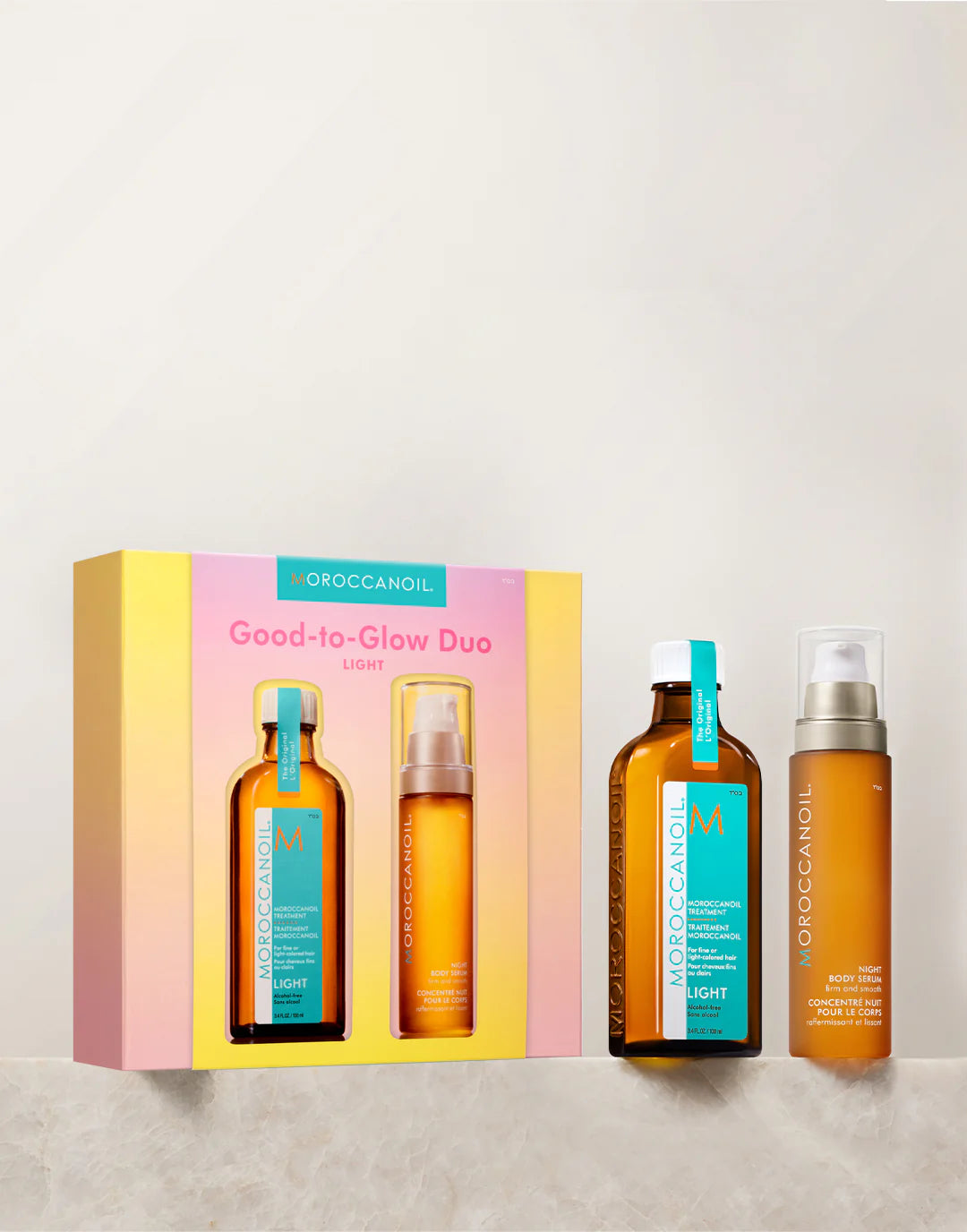Maak kennis met de nieuwe Moroccanoil Good to Glow Summer Duo's: twee krachtige verzorgingsproducten in een zomerse verpakking. Deze set zorgt voor glans van top tot teen en is ideaal voor ieder die zichzelf (of een ander) wil verwennen.