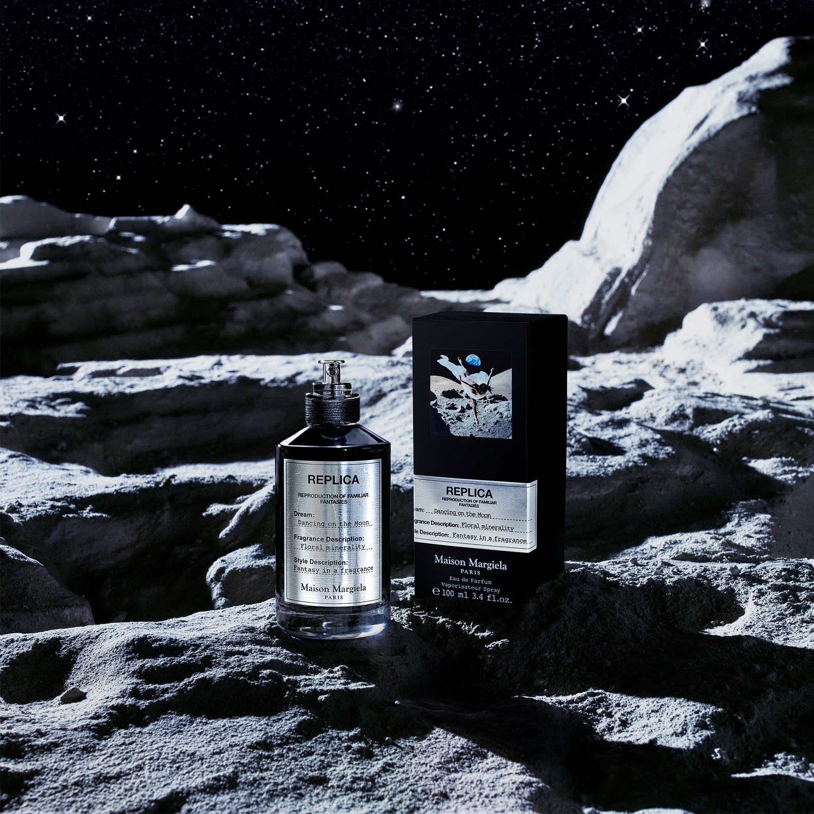 Levitate upon ethereal lunar planes with Maison Margiela's REPLICA Dancing on the Moon Eau de Parfum, a unisex floral aroma with a fantasy fragrance trail. Surrender to the celestial scents of aldehyde accords and moon flower, granting a fresh, glistening olfactive effect as they shimmy across the skin with each spritz. A scattering of iris enhances the signature floral heart, sprinkled over sambac jasmine and frangipani tree nuances like moon dust to support an exhilarating sensation. Ominous yet opalescent, the fragrance closes with a trio of cashmeran, ambergris and musk, bringing the senses back down to earth as they ground the scent. Housed in a grey-black gradient flacon, the transcendental fragrance bottle mimics the frosted silver of the moon against the depth of a deep space backdrop.