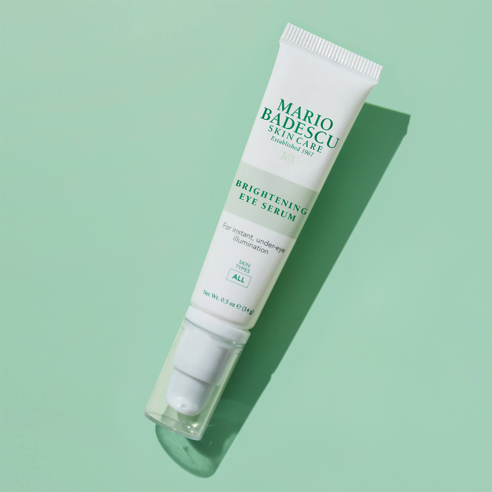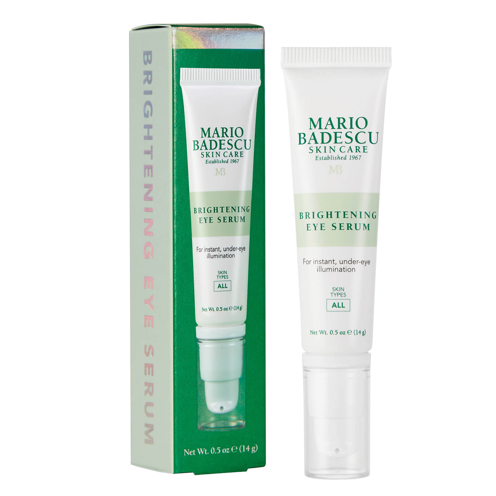 Brightening Eye Serum van Mario BadescuDit multi-tasking verhelderende oogserum heeft een lichtgewicht, snel absorberende textuur om vermoeide ogen te revitaliseren. Het serum is doordrenkt met cafeïne, squalaan, niacinamide en huidondersteunende botanische extracten om het uiterlijk van de tere huid rond de ogen op te helderen, glad te maken en te verminderen. Cafeïne: helpt zichtbaar wallen onder de ogen te verminderenSqualaan: is een uitstekende hydrator en heeft voedende eigenschappen voor de huidNiacinamide: huidverzachtend middel om vocht op het huidoppervlak vast te houdenHyaluronzuur: bindt zich aan watermoleculen om helpen het uiterlijk van fijne lijntjes glad te strijken