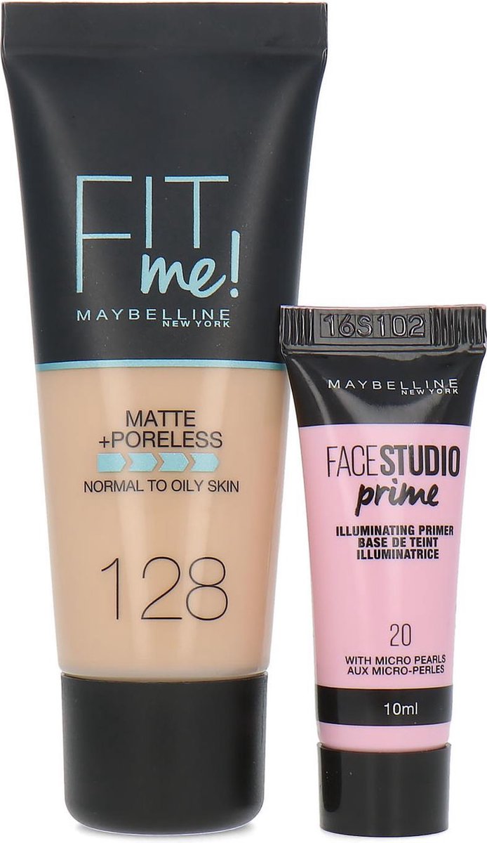 Maybelline Fit Me Matte + Poreless Foundation + Facestudio Prime - 128 Warm Nude (voor normale tot vette huid)