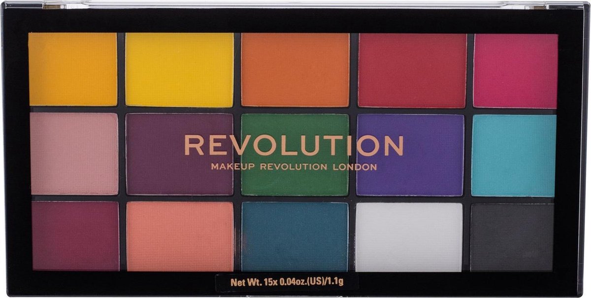 Makeup Revolution Reloaded Palette Marvellous Mattes is een prachtig oogschaduw palette met prachtige kleurrijke en levendige tinten. Deze 15 verschillende tinten hebben een matte finish en variëren van geel en rood tot paars en blauw.