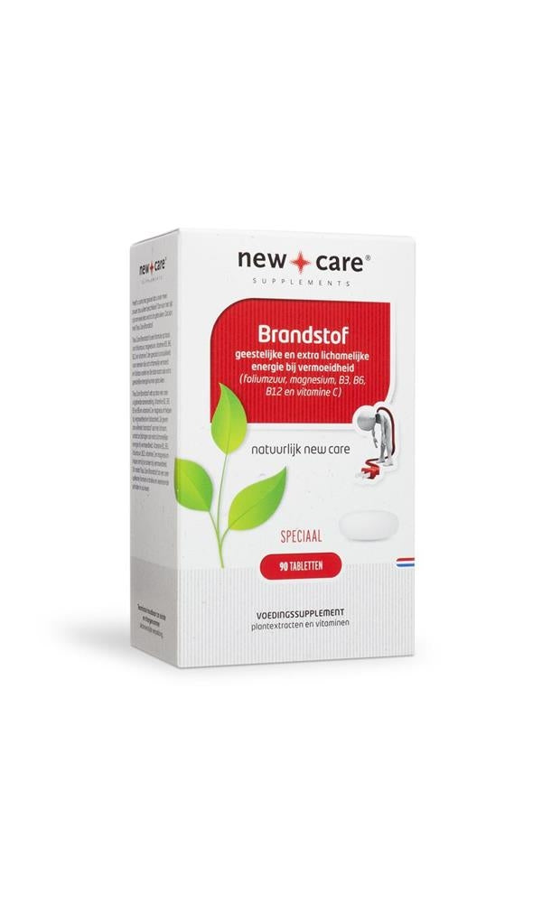 New Care Brandstof is een formule op basis van foliumzuur, magnesium, vitamine B3, B6, B12 en vitamine C die speciaal is ontwikkeld voor mensen die zich lichamelijk vermoeid en futloos voelen en die daarnaast ook extra geestelijke energie kunnen gebruiken. De vitaminen B2, B3, B5, B6, foliumzuur, B12, vitamine C en magnesium helpen bij vermoeidheid en futloosheid. Ze geven aanvullende “brandstof” aan ons lichaam, omdat ze bijdragen aan extra lichamelijke energie bij vermoeidheid. De vitaminen B1, B3, B6, foliumzuur, B12, vitamine C en magnesium geven aanvullende “brandstof” voor geestelijke energie. Bestanddelen per dagelijkse dosering: (= bestanddelen per 3 tabletten) % ADH** Maca wortelextract 450 mg (1) Ginseng wortelextract 300 mg (2) Zoethout wortelextract (bevat zoethout) 300 mg (3) Ginkgo biloba extract 150 mg (4) Brandnetel wortelextract 150 mg (5) Magnesium, als citraat 150 mg 40 Vitamine C, als ascorbinezuur 150 mg 188 Vitamine B5, als calciumpanthotenaat 75 mg 1250 Vitamine B3, als nicotinamide 30 mg 188 Vitamine B6, als pyridoxal 5 phosphate 15 mg 1071 Vitamine B1, als thiamine HCl 15 mg 1364 Vitamine B2, als riboflavine 15 mg 1071 Foliumzuur 300 µg 150 Vitamine B12, als dibencozide 300 µg 12000 ** zoals vastgesteld in de Europese Richtlijn 2008/100/EG Ingredienten Vulstof: microkristallijne cellulose, magnesium citraat, maca wortelextract, vitaminen, panax ginseng wortelextract, zoethout wortelextract, ginkgo biloba extract, brandnetel wortelextract, antiklontermiddel: magnesiumstearaat, vulstof: siliciumdioxide, coating: hydroxypropylmethylcellulose, kleurstof: titaandioxide, antiklontermiddel: talk, stabilisator: hypromellose, bevochtigingsmiddel: polysorbaat, drager: maltodextrine, glansmiddelen: bijenwas en carnaubawas. Dit voedingssupplement bevat zoethout. Mensen met een hoge bloeddruk dienen overmatig gebruik te vermijden. Gebruik: Dosering voor volwassenen: 3 x daags 1 tablet In sommige gevallen kan het wenselijk zijn de dosering gedurende 14 dagen langzaam op te bouwen. Tabletten met water innemen. Distributeur: New Care Supplements Docterskampstraat 5 5222 AM 's-Hertogenbosch Dit product is een voedingssupplement. Een gevarieerde, evenwichtige voeding en een gezonde levensstijl zijn belangrijk. Een voedingssupplement is geen vervanging van een gevarieerde voeding. Aanbevolen gebruik niet overschrijden. Buiten bereik van jonge kinderen houden. Droog, afgesloten en bij kamertemperatuur bewaren, tenzij anders geadviseerd op het etiket. Raadpleeg een deskundige alvorens supplementen te gebruiken in geval van zwangerschap, lactatie, medicijngebruik en ziekte