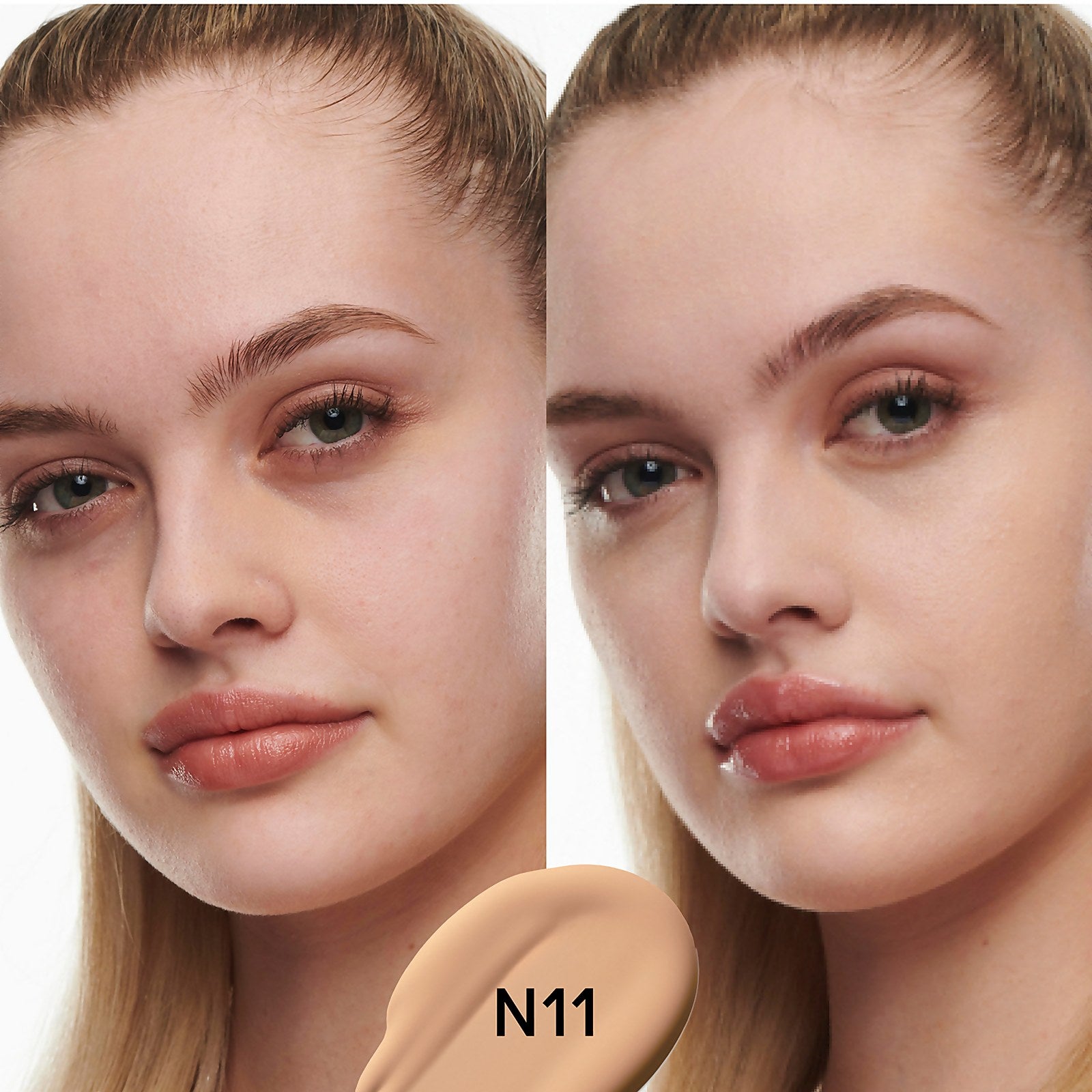 Een hydraterende, zacht stralende en huidverbeterende foundation die +209% directe hydratatie biedt, medium opbouwbare dekking voor een egale huid en langdurige stralendheid.Ervaar de stralendheid van serums. Maak kennis met de serum-gebaseerde foundation die onze expertise in huidtinten combineert met de wetenschap van huidverzorging. Deze geheel nieuwe innovatie levert +209% hydratatie voor een vollere, gladdere en stralendere huid. De doorbraakfoundation van MAC zorgt er ook voor dat je huid na verloop van tijd gehydrateerder en gezonder uitziet, met een stralende finish die de hele dag aanhoudt. Het is samengesteld uit een 80% huidverzorgingsbasis met 33 huidverzorgende ingrediënten, waaronder een oplossing van 10% hyaluronzuur, die vocht onder het huidoppervlak vasthoudt. Bovendien is het verrijkt met een cocktail van krachtige huidverzorgende superfoods, waaronder olijf- en jojoba-olie om de huid te verzorgen voor een gezondere uitstraling, en vitamine E om de huid te beschermen tegen vervuiling en blauw licht. De Studio Radiance Serum-Powered Foundation biedt 24 uur hydratatie en een medium opbouwbare, egaliserende dekking die je teint direct egaliseert. Deze lichte foundation vervaagt ook de verschijning van poriën, huidroodheid, donkere vlekken en fijne droogte lijntjes. Bereik een op maat gemaakte gloed met de Artist-Curated Radiance Blend:tm:, bestaande uit zilveren en gouden parelmoeren deeltjes die speciaal zijn ontwikkeld om unieke ondertonen van lichte en rijke huidtinten te complementeren. Verkrijgbaar in 56 stralende tinten voor iedereen. De recyclebare glazen foundationfles is ontworpen met duurzaamheid in gedachten, met een dop gemaakt van 30% gerecycled plastic (PCR).