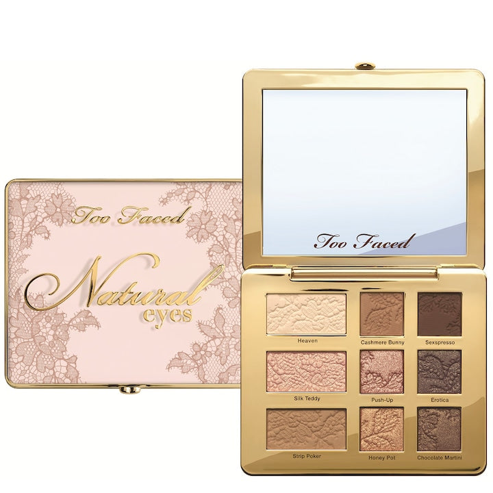 Pronk met uw natuurlijke kant met de vernieuwde versie van Too Faced’s iconische Natural Eyes palet uit de It Just Comes Naturally-collectie. Het geliefde palet is bijgewerkt met de exclusieve kokosnootboterformule van Too Faced voor romiger en comfortabeler gebruik. Bereik eindeloze, natuurlijk, sexy looks met negen matte, satijnachtige en glinsterende ooschaduwtinten in het neutrale palet van uw dromen.
