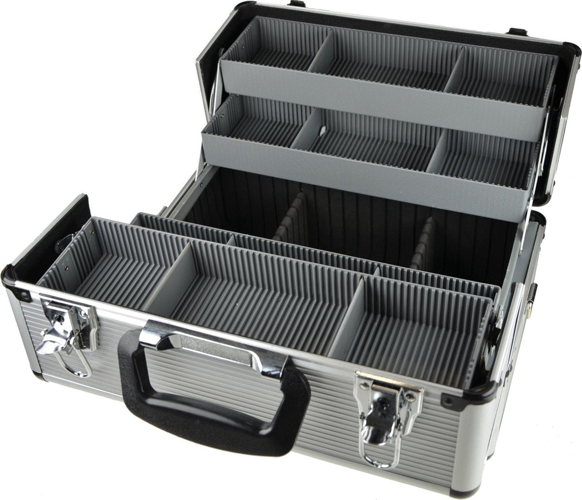 Sterk aluminium schminkkoffer met veel vakken. Dankzij de verplaatsbare binnenwandjes, zijn de vakken eenvoudig in te delen. Makkelijk schoon te maken. Inclusief schouderband.