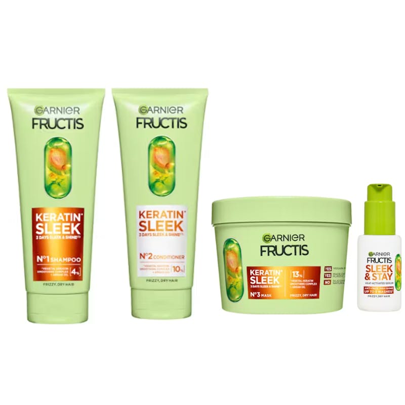Garnier Keratin Sleek Quartet Shampoo 200 ml + 200 ml + 370 ml + 50 ml.