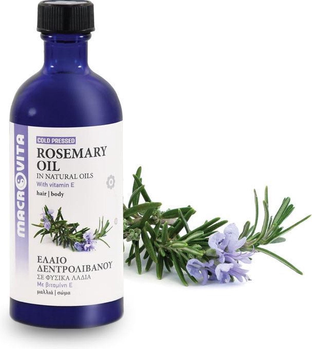 Normaliter is pure rozemarijnolie een bijzonder irriterend ingrediënt. Deze krachtige olie bevat veel antioxidanten en antibacteriële bestanddelen, maar doordat de huid snel beschadigd raakt is het af te raden om natuurlijke rozemarijnolie puur op de huid aan te brengen. Macrovita Griekse cosmetica heeft de rozemarijnolie gecombineerd met draagoliën om een diepere penetratie in de huid te bereiken en daarnaast het vitaminecomplex E, C en F toegevoegd. Door deze krachtige vitaminen wordt de haarwortel gevoed, waardoor haargroei wordt gestimuleerd en daardoor het haar langer en steviger wordt. De natuurlijke haarversteviging wordt extra aangezet door vitamine F, die de huid hydrateert en de haarwortel beschermt. Door enkele druppels rozemarijnolie in het haar te masseren wordt het haar soepeler, de haarwortel gevoed en de hoofdhuid gehydrateerd. Natuurlijke haarversteviging bereik je met rozemarijnolie: probeer het zelf.