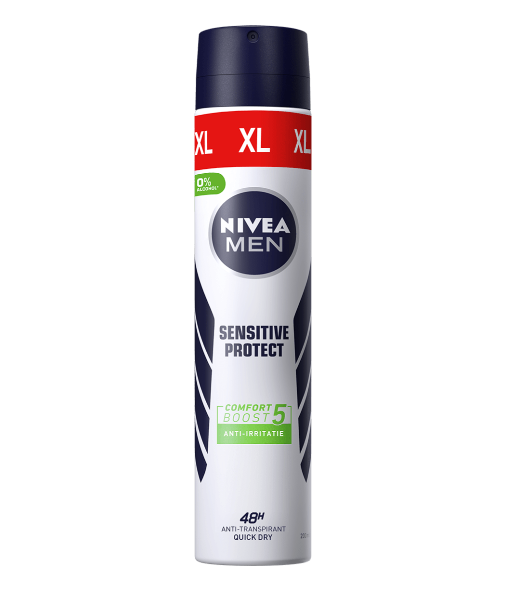 NIVEA MEN Sensitive Protect Anti-Transpirant biedt 48 uur bescherming tegen zweet en geur, speciaal ontwikkeld voor mannen met een gevoelige huid.