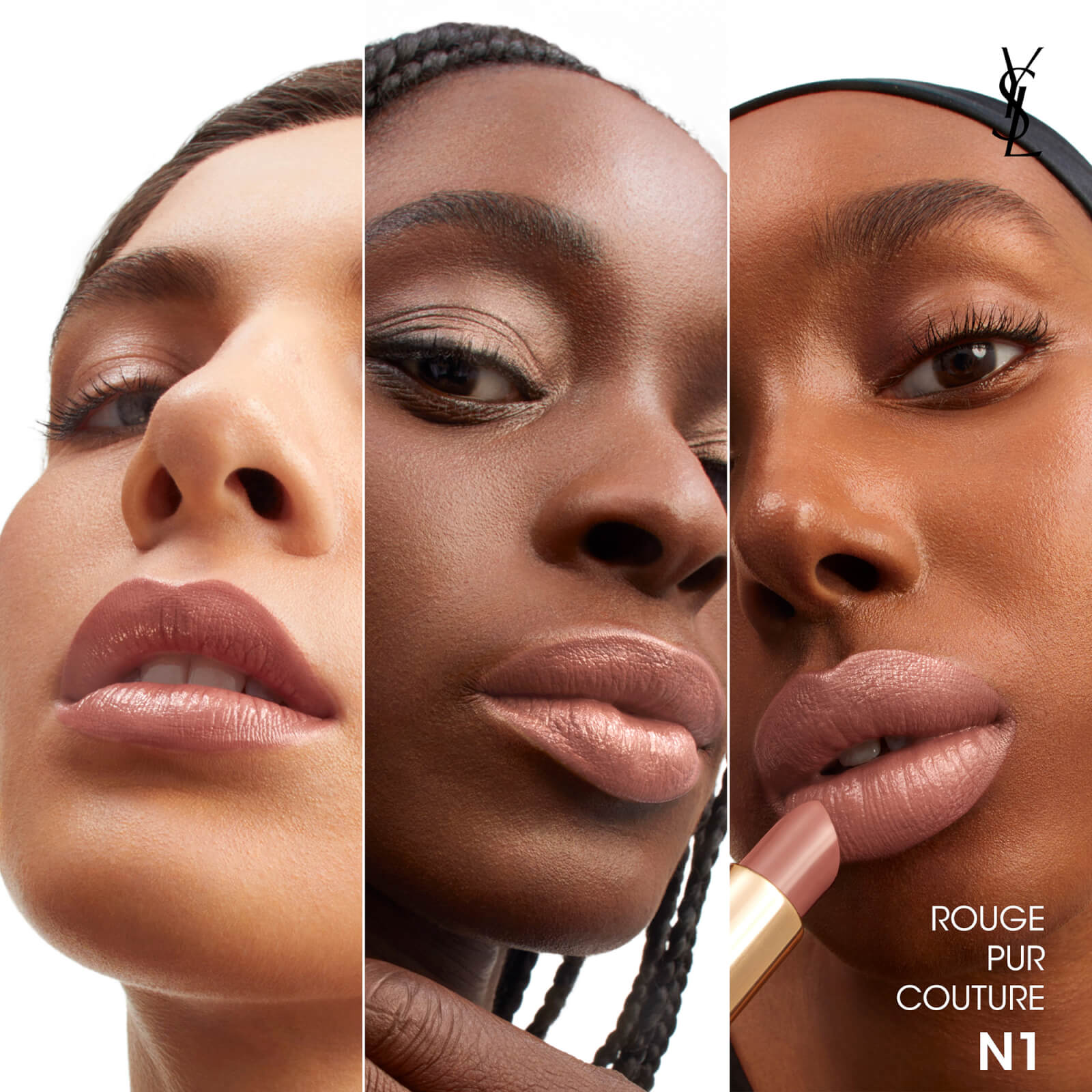 Reimagined with the YSL Cassandra logo and now with an 80% lip-caring base, Yves Saint Laurent’s Rouge Pur Couture Lipstick cushions lips with up to 16 hours of comforting colour. The lipstick’s creamy texture glides effortlessly onto lips, granting one-swipe coverage with a satin finish and barely-there feel. The nourishing formula is infused with tuberose and prickly pear flower extracts sourced from YSL’s Ourika Community Gardens in Morocco. Combined with ceramides for moisturising benefits, lips are left feeling smoother and softer after every application. Choose from 27 couture shades in four colour families designed to suit every complexion.
